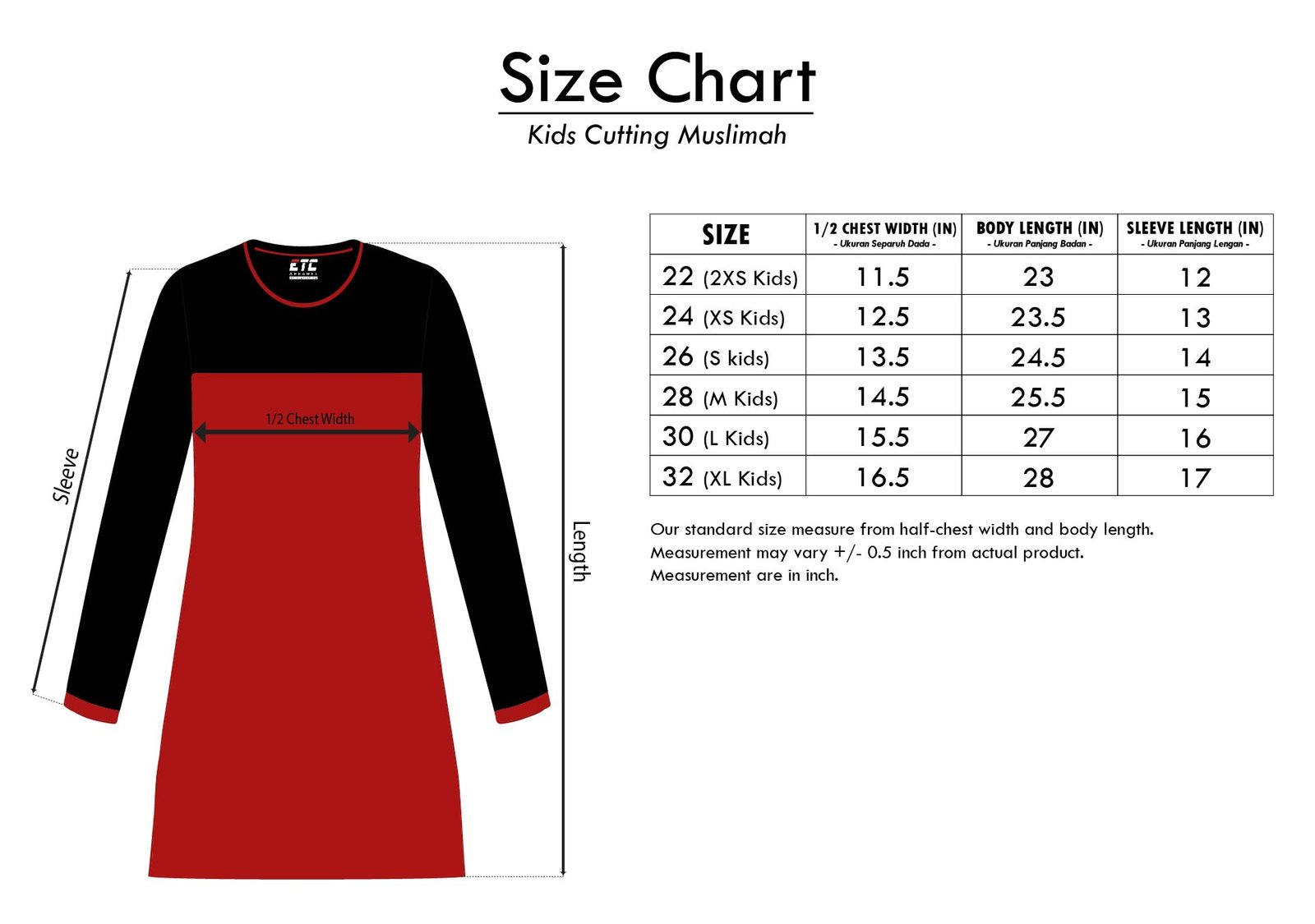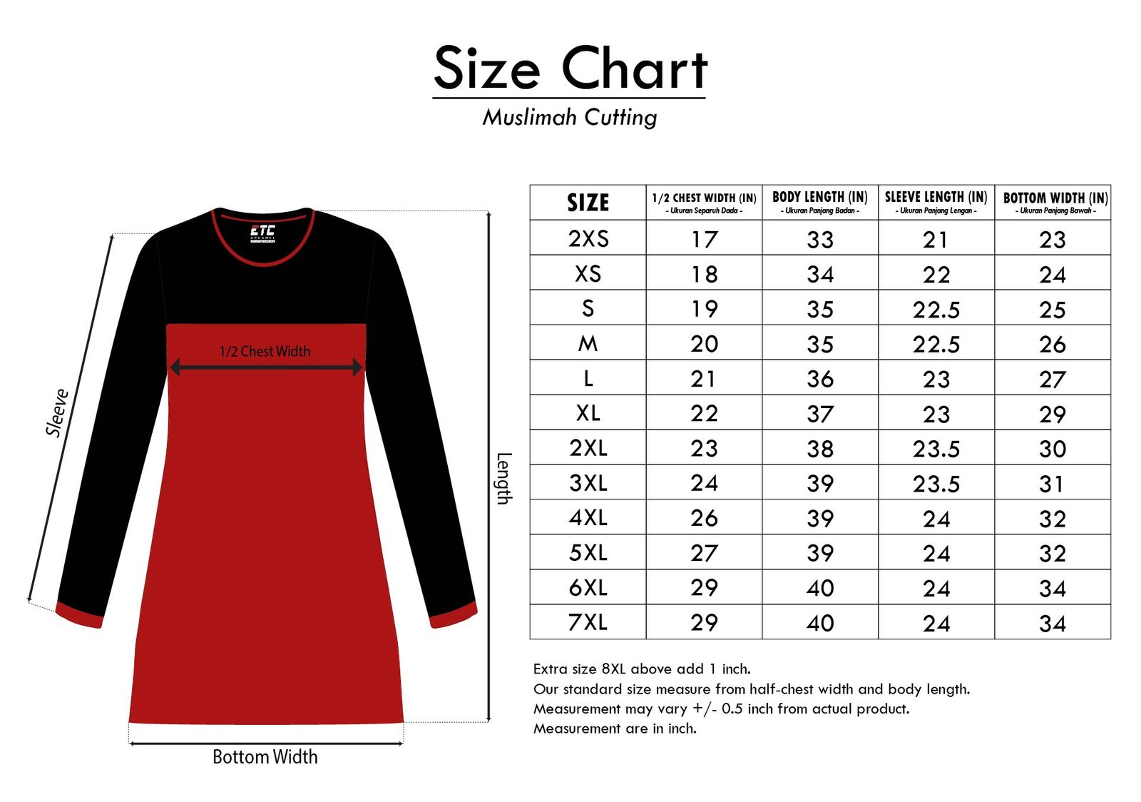 | Size | 22 (Kids), 24 (Kids), 26 (Kids), 28 (Kids), 30 (Kids), 32 (Kids), 2XS, XS, S, M, L, XL, 2XL, 3XL, 4XL, 5XL, 6XL, 7XL, 8XL, 9XL, 10XL |